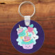 A keychain with a cute illustration featuring a cupcake and ice cream smiling with joy. A rainbow and hearts surround the drawing. A cute fluffy cloud is also smiling with happiness. The cupcake and ice cream have a trendy unicorn horn on top. Cute and adorable design full of joy.