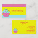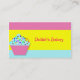 These adorable business cards that can be used for a bakery features a colorful cupcake graphic on a colorful background can be customized by customers. Add your company name on the front and the company's information on the back.