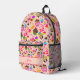 A colorful cupcake and desert backpack. Pretty in pink this pattern features cakes and candy. Personalize with a custom name for a cute gift idea.
