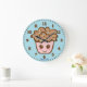 Lovely whimsical wall clock for kid's room. The design features a sweet smiling kawaii face cupcake and large 12 hour numbers. It's personalized with a custom name discretely printed under the number 6 which adds a subtle personal touch. Makes a wonderful wall decor item for a nursery or a home of a cupcake lover.