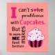 If you are looking for cute cupcake quotes, consider this "I can't solve problems with Cupcakes. But it sure makes me feel better." text design in black and bright pink. Hidden in the message is I Heart Cupcakes. Funny and quirky cupcake quote for cupcake and dessert lovers.