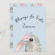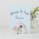 Blessings for Easter Quote Cute Curious Grey Rabbit Pink Flowers Blue Holiday & Seasonal Easter Cards.