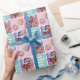 Custom photo gift wrap is a fun way to creatively display your pictures! This personalized set includes three sheets, perfect for holidays, birthdays, Christmas, and other special occasions. The pattern showcases three of your favorite photos in a stylish grid with rounded squares, and simple typography. You can customize the text with your own greeting, phrase or slang. This modern retro style is perfect for photos of kids, teenagers, friends, family and pets, or include decorative images to enhance your visual theme. A seamless pattern wrapping paper, printed on premium quality paper with your choice of a matte or glossy finish. Different length rolls are available from 6 feet - 60 feet. Colors: green and white — or change the color with the design tool.