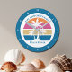 Cute Custom Beach House Palm Trees Blue Round Clock