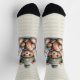 Custom socks have a football theme with a feminine touch. Modern design with flowers and a cute bear holding a football. Ecru background. Customize the text on the socks with your desired name or phrase. Great for football fans. Use the template to create your own custom socks.
