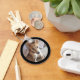 Bring your dog with you everywhere you go with this custom dog photo and name keychain. Just replace the photo with one of your own, and change the name. Square photos work best to fit the template.