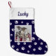 Cute Custom Dog Photo Name Blue White Paws Small Christmas Stocking