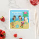 Cute personalized hula dancer girls on a beach for your luau party. Customize this pretty tropical island paper napkin for a seaside celebration on the sand. Features a cool palm tree and dancing next to Tiki statues and blue water.