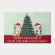 These beautiful Pembroke Welsh Corgi dogs have their heads tilted inside of a cute Santa Claus hat. The two pups are sitting in front of a pretty Christmas tree on this fun customizable holiday doormat. A lovely corgis welcome door mat with a wonderful drawing of a tricolor and a red and white corgi pair.
