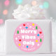 Get into the festive spirit with these cute personalized stickers! A playful design with snowflakes, hearts, stars and Christmas trees, all adding to the cheerful vibe. The template incorporates simple typography with the phrase “Merry Vibes Only”, and is customized with your name. A modern, retro style that's perfect for kids, teens, friends and family. Custom stickers add a personal touch to gift wrap, envelopes, party favors, or embellishments for holidays, birthdays, and other special occasions. Printed colors: pink, red, green, blue, yellow and white — or change the colors with the design tool. Available with a matte or glossy finish.