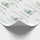 This custom Christmas wrapping paper features a cute nutcracker theme. An illustration of a Christmas tree is pictured with little gifts below it. A nutcracker toy soldier is standing on one side of it, with a sugar plum fairy fluttering above him. The Mouse King is printed on the other side. Little snowflakes fall around the tree. A sample greeting is printed above the image, with a name printed below in a whimsical green font. You can personalize the wrapping paper to include your own custom name or text.