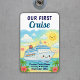 Custom small cruise cabin door magnet with a kawaii illustration to celebrate you're going on your first cruise. Design featuring your names, the ship name, a date, or any text you need. It is ideal to hang in your stateroom and can be repurposed as a fridge magnet keepsake after the trip.