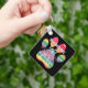 The key chain is made of metal and really sturdy. The flower design is really cheerful. The logo and colors are clear and crisp!