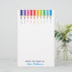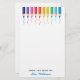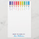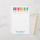 Beautiful line of colored pencils leaving a pretty colorful squiggle streaked across the page in cute rainbow colors to decorate the top of this personalized stationary paper for an elementary school or art teacher. Customize with your name or other text at the bottom of the notepad in purple and blue.
