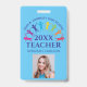 Cute Custom School Teacher Rainbow Name Blue Badge