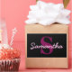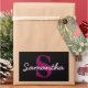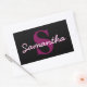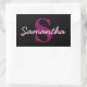 Cute Customizable Pink & Black Monogram Script Rectangular Sticker