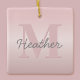 Cute Customizable Pink Monogram & Your Name Script Ceramic Ornament