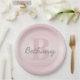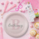 Cute Customizable Pink Monogram & Your Name Script Paper Plates