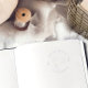 Beautiful hand-drawn leaves on both sides of the circle give it a botanical touch.