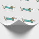 Cute dachshund in mint blue wrapping paper