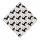 Cute little Doxie dog pattern. Black and Tan Smooth Coated Dachshund with the words "Doxie, Dachshund and Dackel (German for Dachshund).
