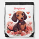 Cute Dachshund Puppy Drawing with Hearts Kawaii Drawstring Bag