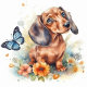 An adorable watercolor of a dachshund puppy.