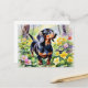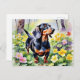 Cute Dachshund Sausage Dog Spring Primrose Flowers Postcard