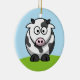 A cute cartoon cow on a round ornament. The flip side of the ornament shows the tail end of the cow.