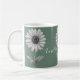 Cute monocromatic Daisy flower in a boho green background coffee mug. Personalize with name or text. Adjust font type and color to your preference.