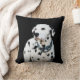Cute Dalmatian Dog Spots black background Throw Pi Pillow