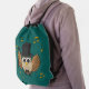 Cute Dancing Owl with Music Notes Cartoon Drawstring Bag
