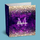 Cute dark purple gold faux glitter monogram 3 ring binder
