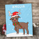 Cute Deer Drawing Snow Snowflakes Christmas blanket. Deer with Santa Hat and snowflake on the nose. Add your name or erase it.