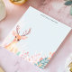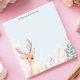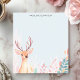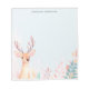 Add a touch of woodland whimsy to your notes with this adorable, personalized notepad. A sweet fawn with prominent antlers stands amidst a soft arrangement of pastel foliage. The light, muted background enhances the gentle, natural feel. Customize this notepad with your own text. Ideal for nature lovers, kids, or anyone who appreciates a touch of charm.