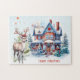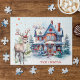 Puzzle featuring a cute gingerbread like home with white dove and deer in a watercolor style. Great for Christmas!