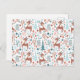 A postcard with an adorable Christmas pattern. Cute winter deer with antlers prancing around a forest of trees and grasses.