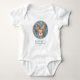 Cute Deer Reindeer Baby`s First Christmas baby bodysuit. Cute deer on blue winter background. Personalize the bib with your baby's name and the year of birth.