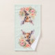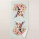 Towel set with a beautiful illustration featuring a cute deer. Surrounded by pink roses and flowers.