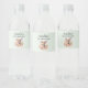 Water bottle labels with a beautiful illustration featuring a cute deer. Surrounded by pink roses and flowers.