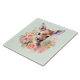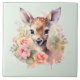Ceramic tile with a beautiful illustration featuring a cute deer. Surrounded by pink roses and flowers.