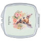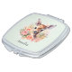 Compact mirror with a beautiful illustration featuring a cute deer. Surrounded by pink roses and flowers.