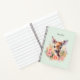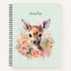 Spiral notebook with a beautiful illustration featuring a cute deer. Surrounded by pink roses and flowers.