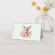 Place cards with a beautiful illustration featuring a cute deer. Surrounded by pink roses and flowers.