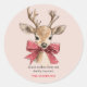 Cute Deer with Red Bow | Pink Christmas Classic Round Sticker