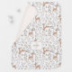 Cute woodland themed Baby Blanket featuring sweet deer and plants in neutral shades of beige, cream, sage green, and taupe on the white background. The back side is cream. Easily personalize the text - Kate Eden Art