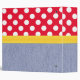 Fun Avery three ring binder, with graphics of a blue denim look, on the bottom of the binder, and a red, with white polka dots, on the top. Graphics of a yellow ribbon runs across the middle, with a pretty bow, with red berries, on the front. Text in red, on the front ribbon, is ready to personalize for yourself or as a gift idea. Great for home, school, or office. Inserts and pages sold separately at your local discount, office supply, or craft shops.
