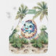Celebrate the arrival of your little one with this adorable personalized baby blanket, featuring a cute watercolor baby dinosaur hatching from an egg with the playful phrase “Hatching Soon.” Designed in soft, neutral colors, this blanket is the perfect baby shower gift for boys, combining charm, warmth, and a touch of whimsy.