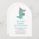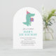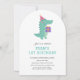 This cute invitation is ideal for a boy 1st birthday but can be adapted for any occasion. Features a cartoon dinosaur wearing a party hat and holding a birthday gift. The simple, elegant typography is easy to customize for any age with all your party details.