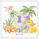 Get ready for the party with this cute dinosaur 1st birthday sticker. Fun, trendy design for boy or girl. Easy to change the text.
